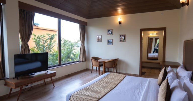 Experience comfort and luxury in our wildlife-themed accommodations at Oakwood Resorts Tadoba.